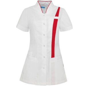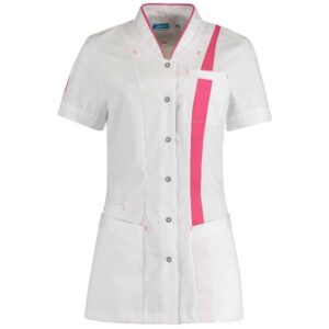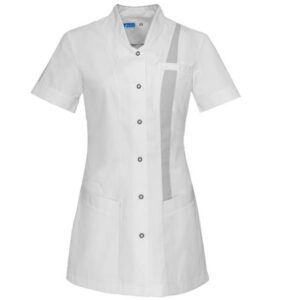 Licht getailleerd damesjack met opstaand boord, diverse zakken en zijsplitten. Verkrijgbaar in uni wit of wit met kleuraccent. Met tricot deels op rugpand voor extra comfort.