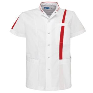 Licht getailleerd herenjack met opstaand boord, diverse zakken, zijsplitten, kleuraccenten in rood en tricot deels op rugpand voor extra comfort.