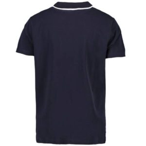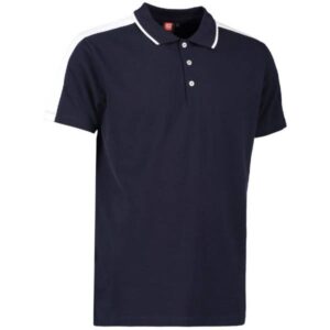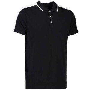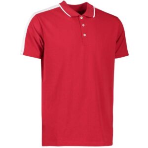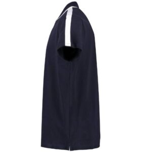 Sportief poloshirt met goede pasvorm en fraaie contrastband op schouders/mouwen. De kraag heeft een contrasterende streep. Witte knoopsluiting. Slimme split aan de zijkant.